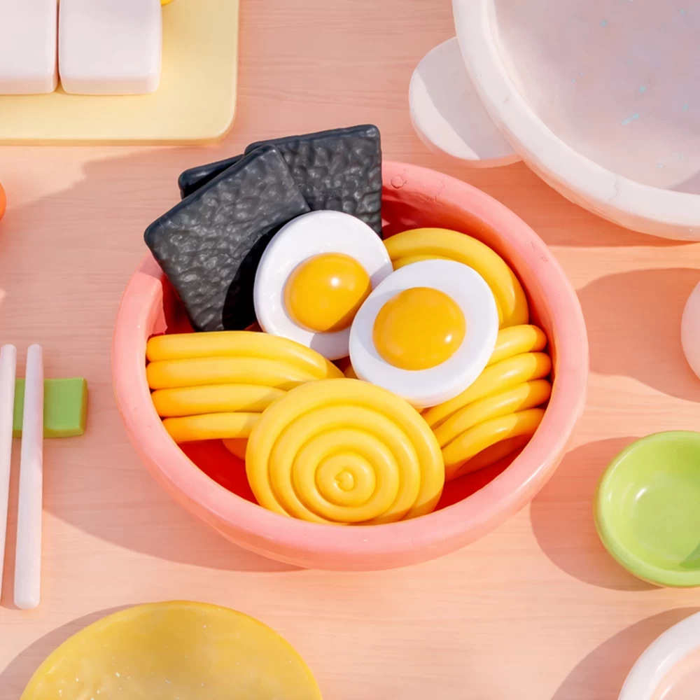 Fun pretend play food set featuring noodles, eggs, and tasty add-ons for creative cooking play. Helps kids develop imagination, role-play skills, and basic food recognition. Made with safe, colorful materials perfect for interactive kitchen playtime.