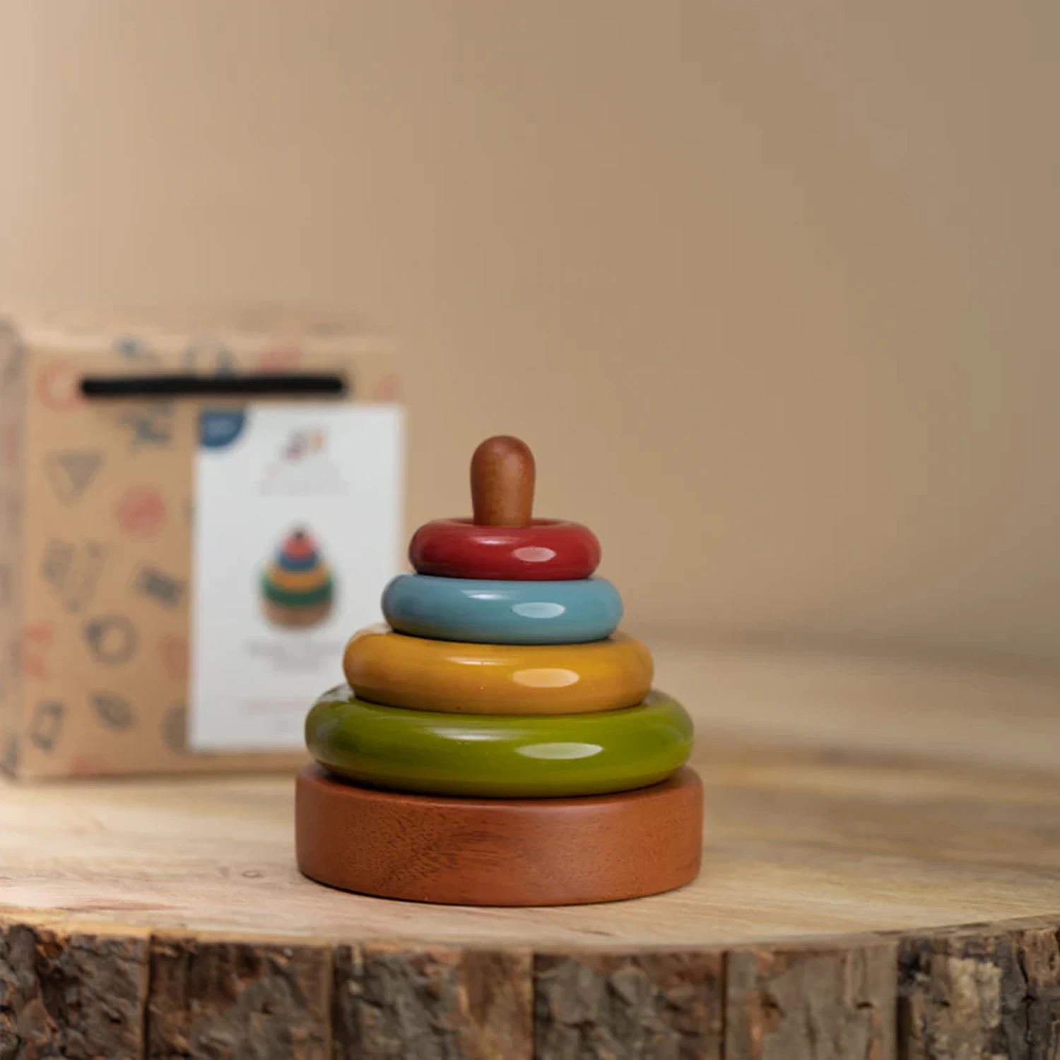 Beautifully crafted wooden stacking toy with smooth finish and vibrant colors. Perfect for improving hand-eye coordination, motor skills, and early learning. A safe, durable, and timeless toy that makes playtime both fun and educational.